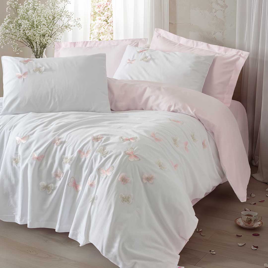 Charming - 3D Бродерия - Двоен Комплект - Памучен Сатен