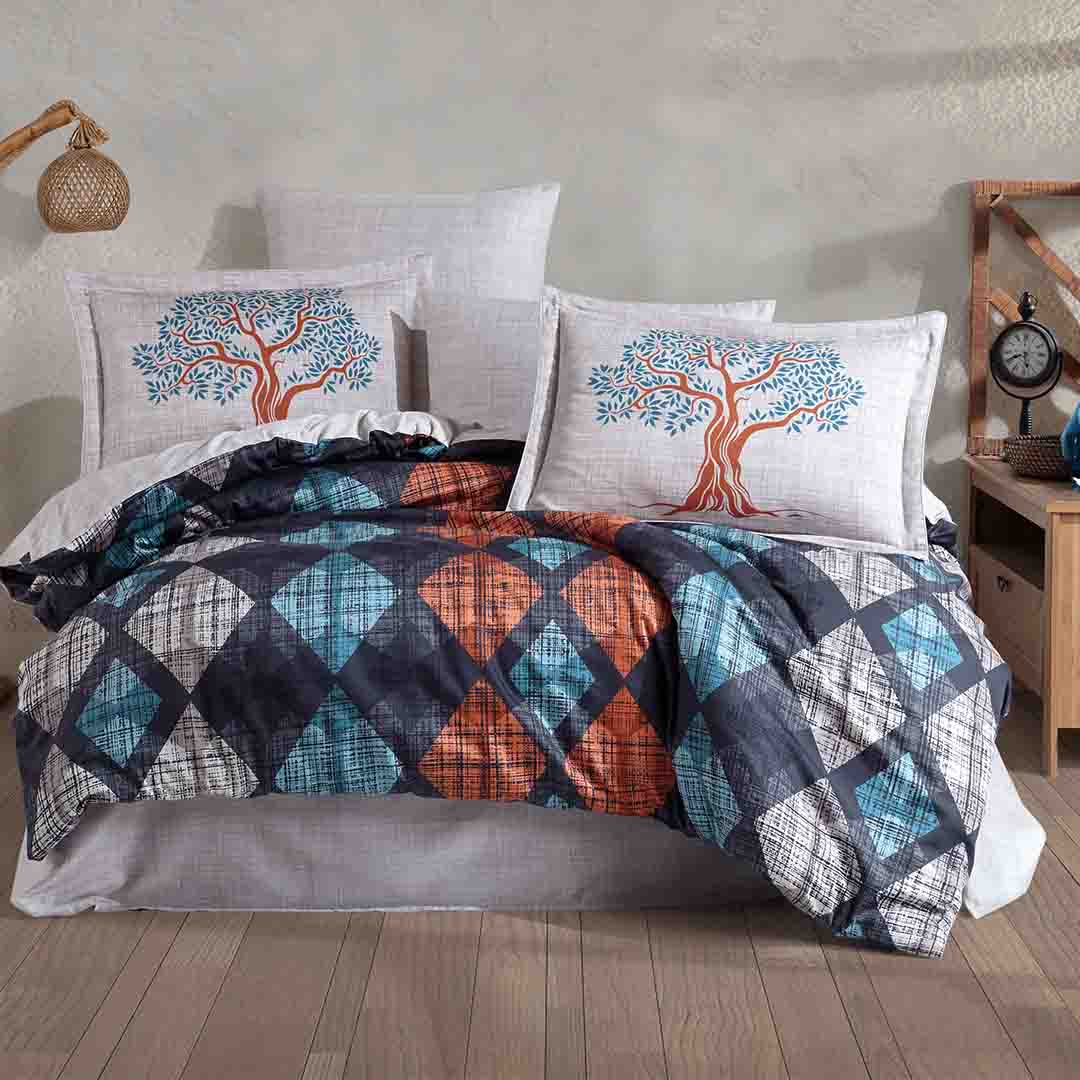 Ruth - Син - Двойно Спално Бельо - Памучен Сатен