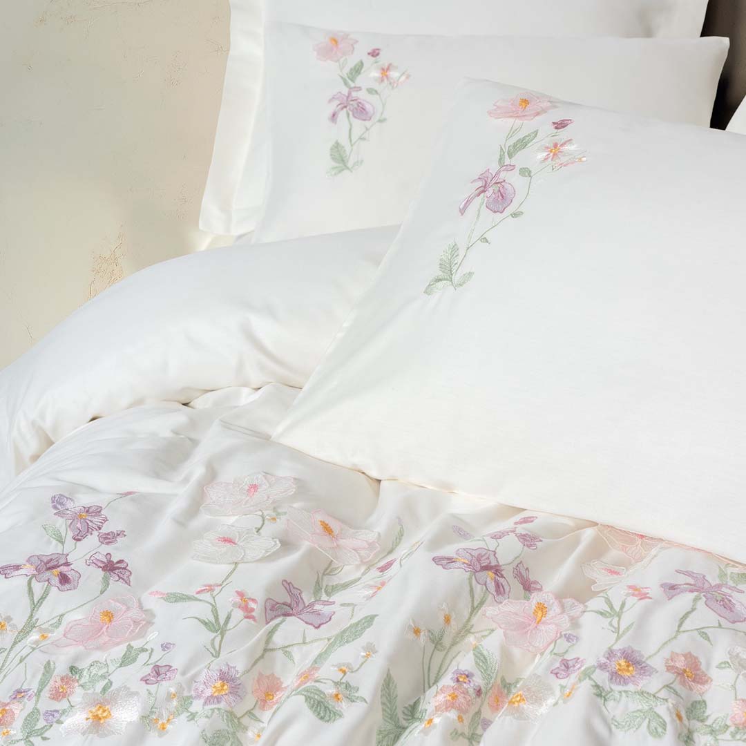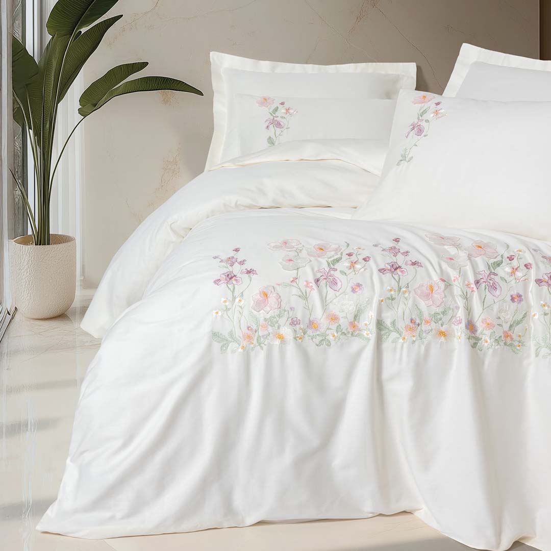 Zephy - Екрю - Двоен Комплект 3D Бродерия - Памучен Сатен - 6 части