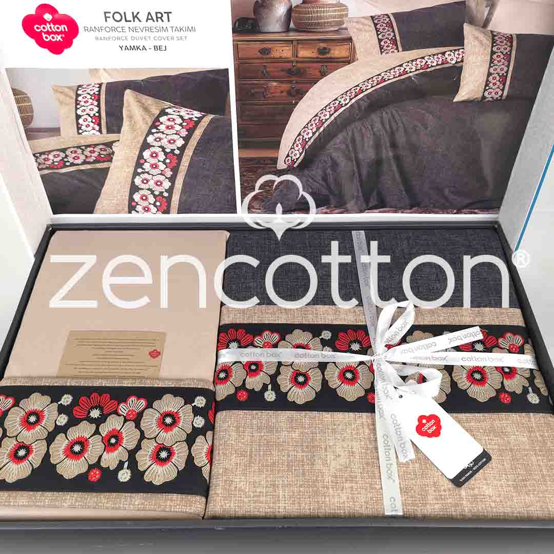 Yamka - Двоен Комплект Спално Бельо - Беж - Ранфорс