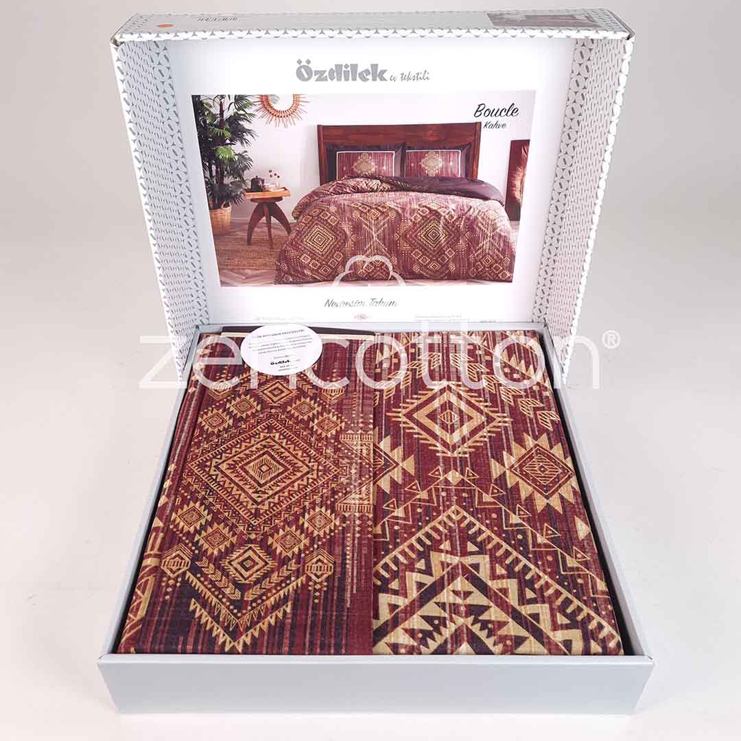 Boucle - Кафяв - Комплект Двойно Спално Бельо - Ранфорс